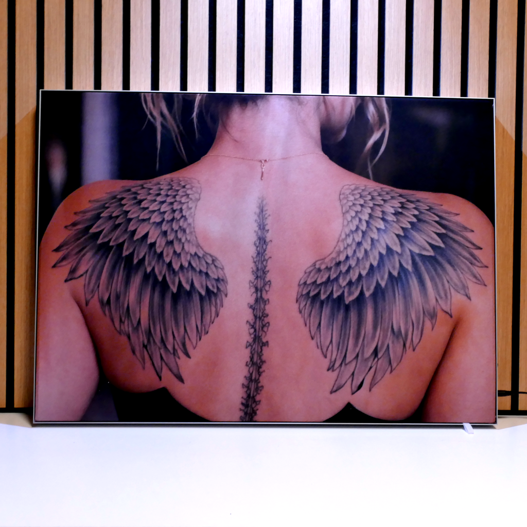 Unser kraftvollstes Präsentationsformat: Der extra tiefe LED-Rahmen sorgt für maximale Präsenz und einen luxuriösen Galerie-Look. Ideal für großformatige Tattoo-Motive mit Wow-Effekt.